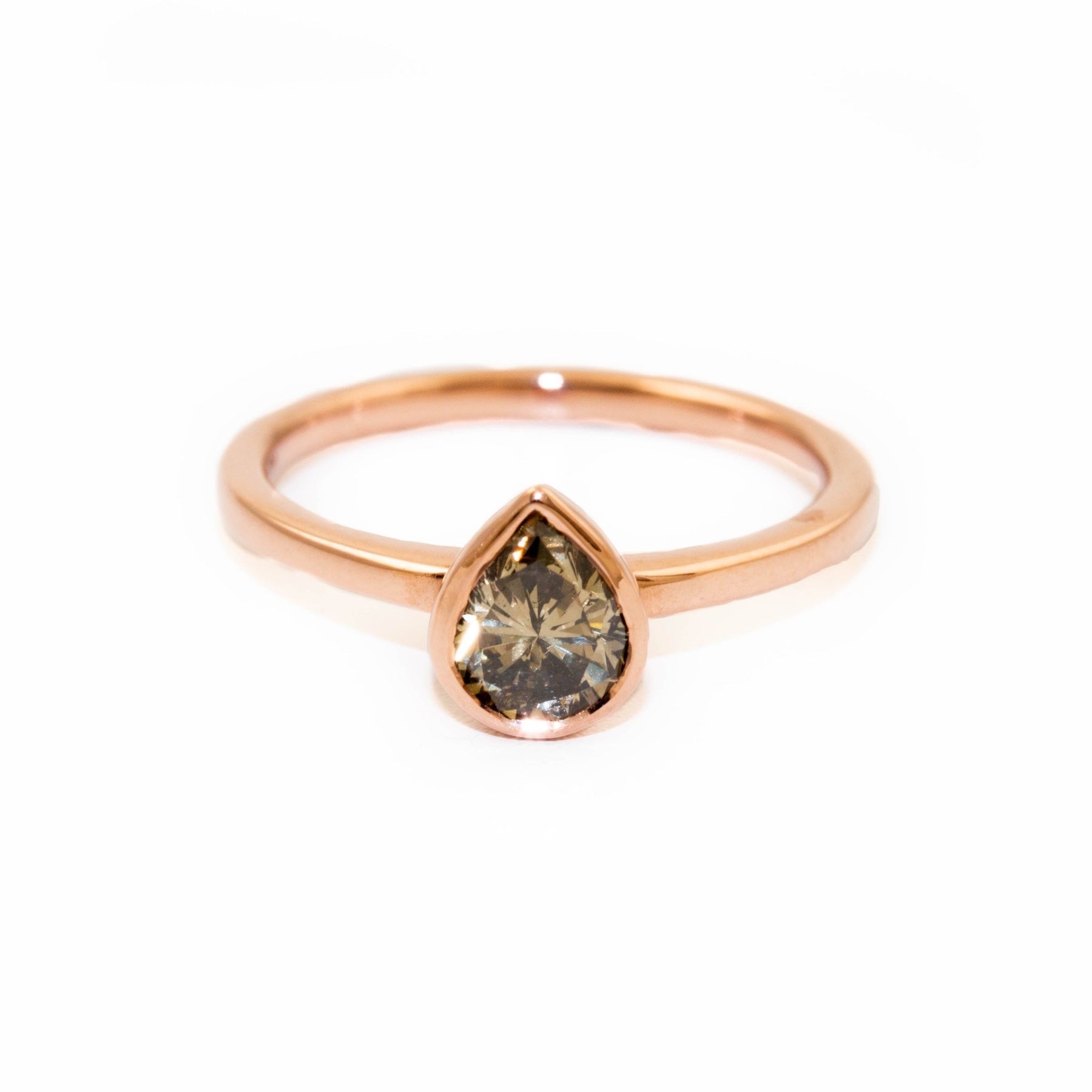 Made in Vancouver by Kingdom Jewelry using 14 karat Rose Gold and Champagne .85 Carat Diamond.
