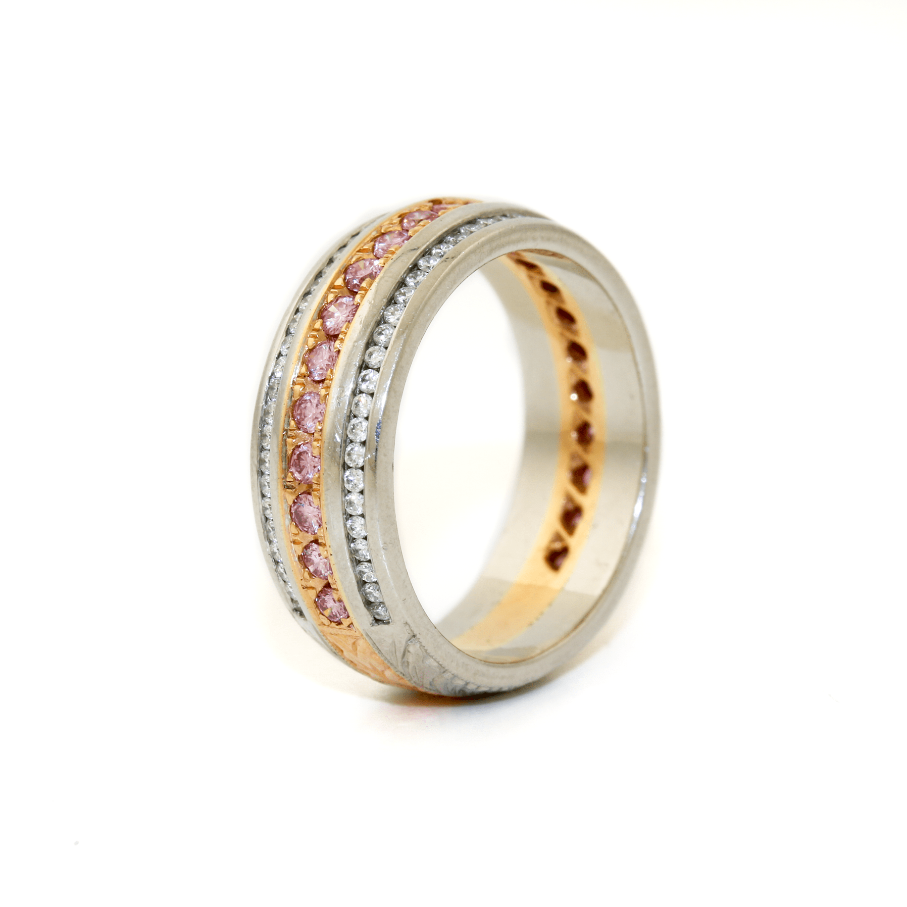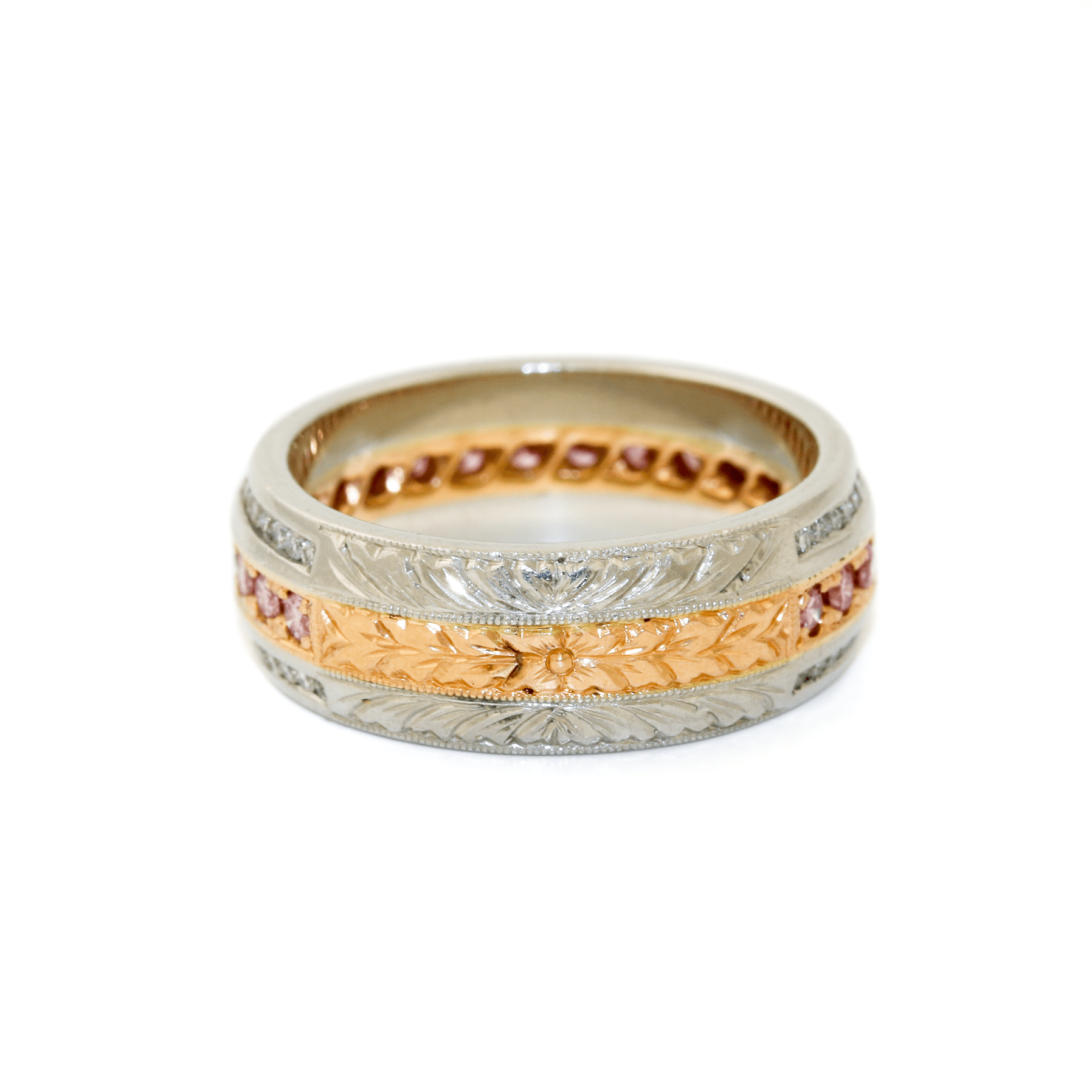 Platinum + 18k Two-Tone x 6mm Pink & White Diamond Filigree Band