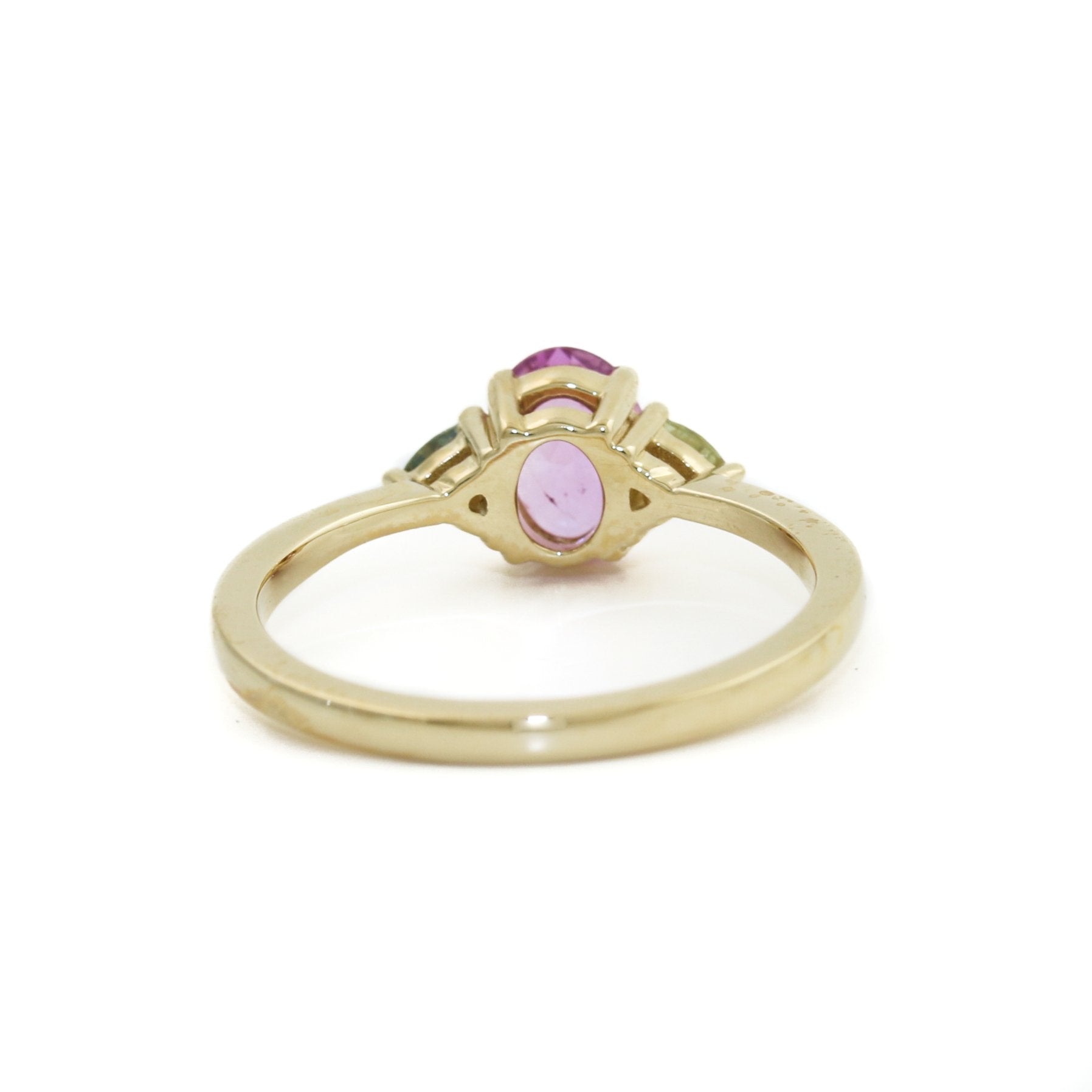 14K Gold Pink & Teal Sapphire Ring