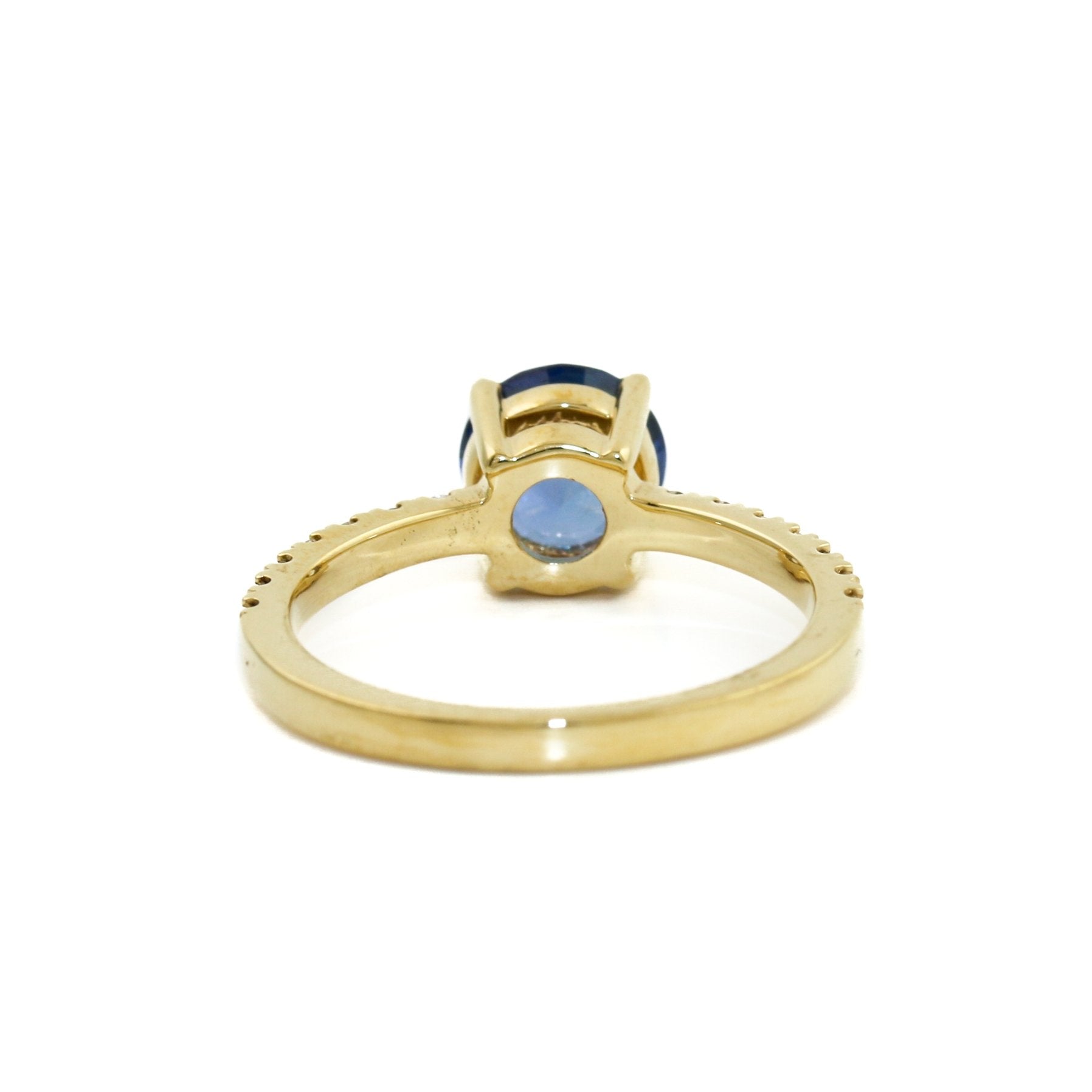 Made by Kingdom Jewelry. 1.79ct Sri Lankan Sapphire. .21 ct VS1 E Diamonds. 14k yellow gold.