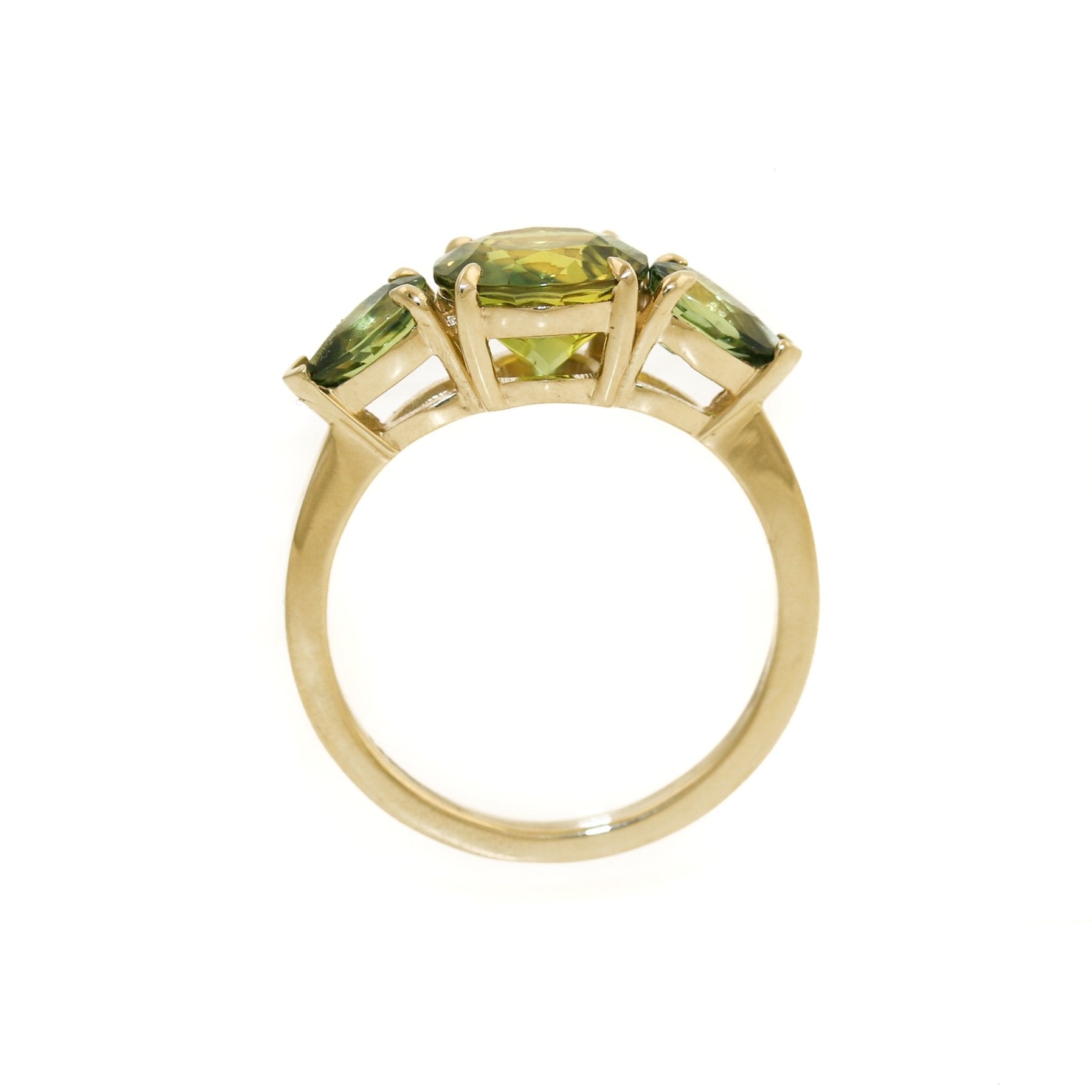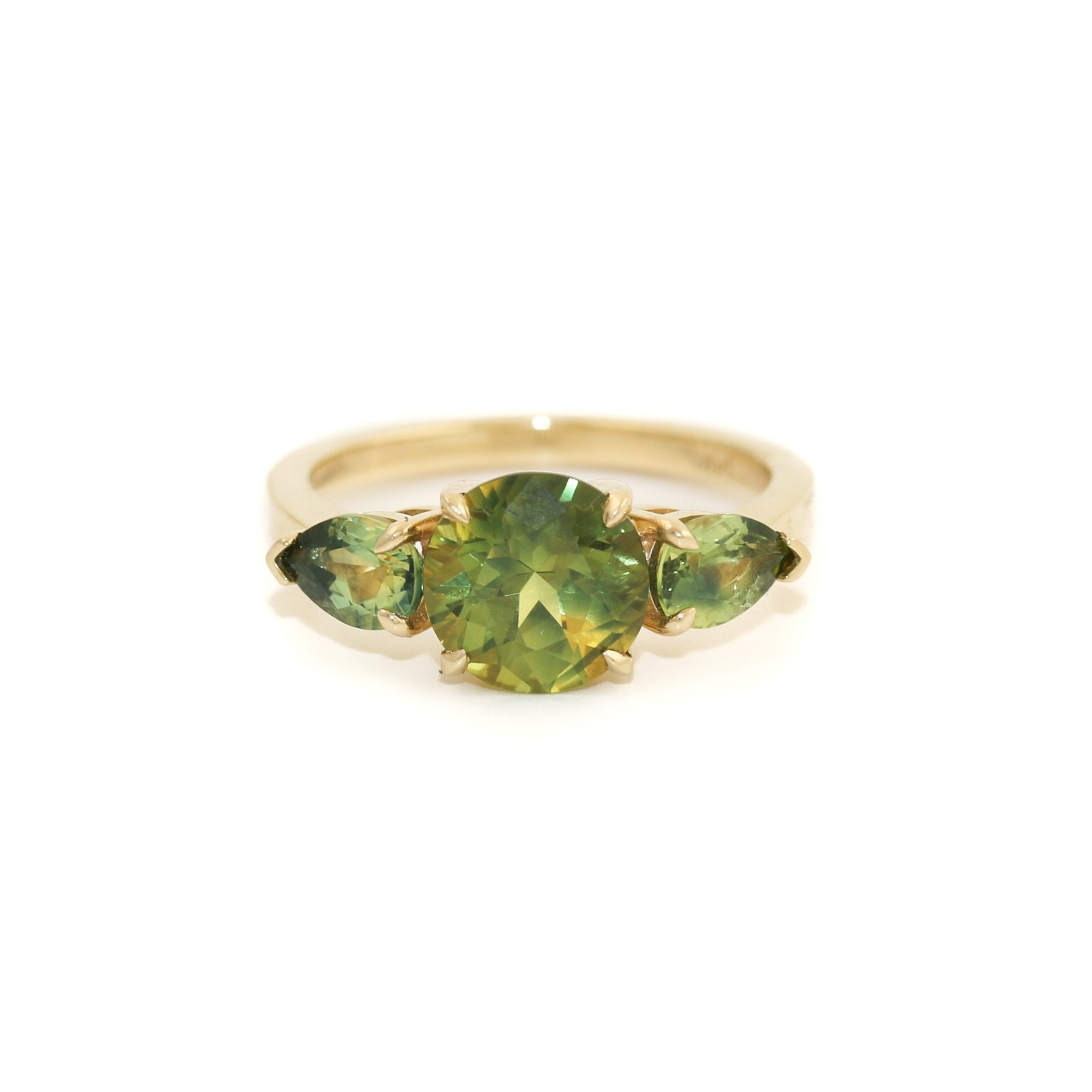 Introducing the captivating Australian Chartreuse Sapphire Engagement Ring, a radiant masterpiece crafted to ignite everlasting love. The center stage is graced by a stunning Chartreuse coloured sapphire, exuding a unique blend of green and yellow hues reminiscent of Australia's lush landscapes. Flanked by two matching side sapphires, this trio forms a harmonious symphony of beauty. With a 14k gold shank, the ring's polished band represents the seamless journey of love. Meticulously handcrafted, this exquisite ring showcases exceptional craftsmanship and attention to detail. Embrace the allure of this Australian Chartreuse Sapphire Engagement Ring, symbolizing the rare and vibrant beauty of love's eternal connection.