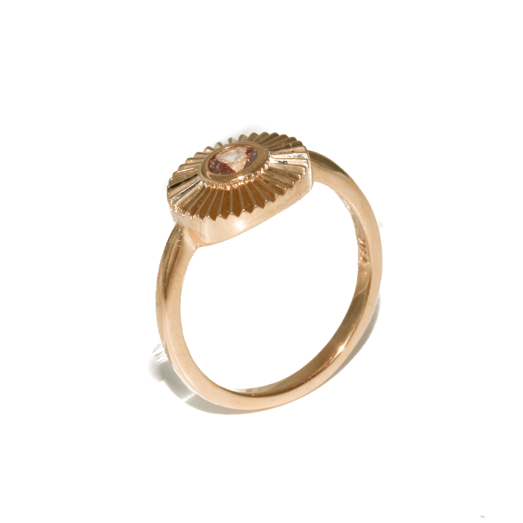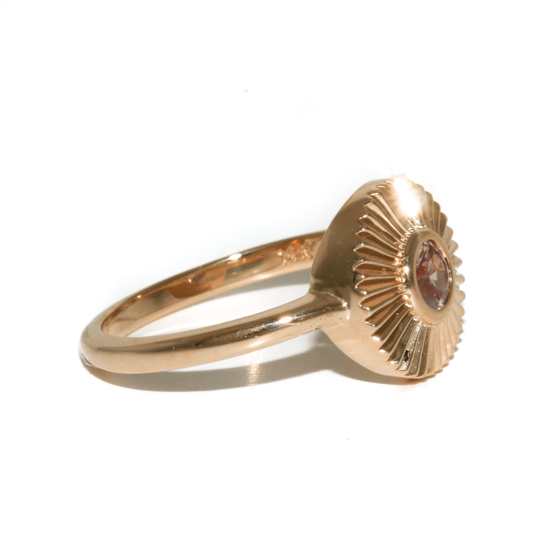 14k Gold x 1cm Round Pink Sapphire Deco Startburst Signet
