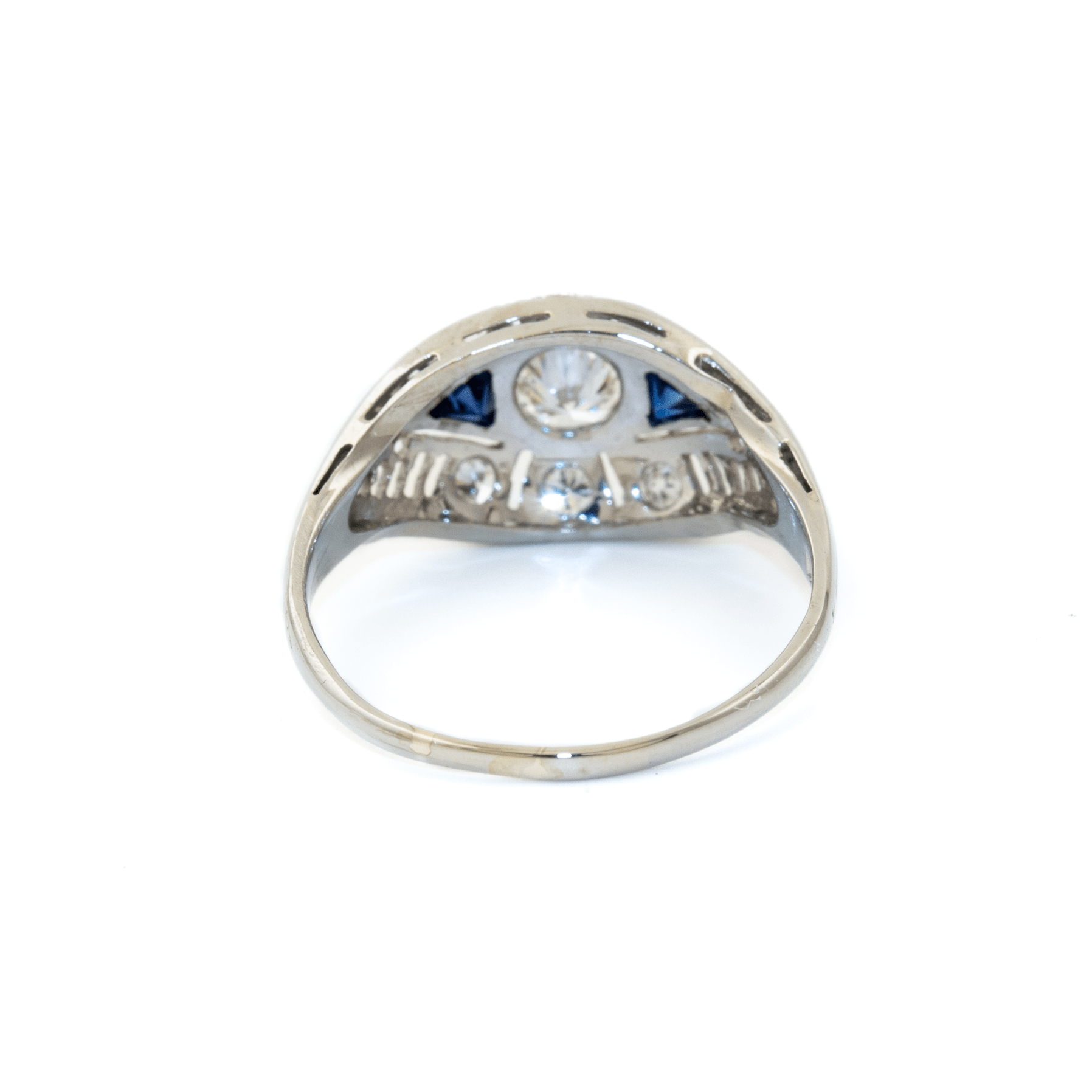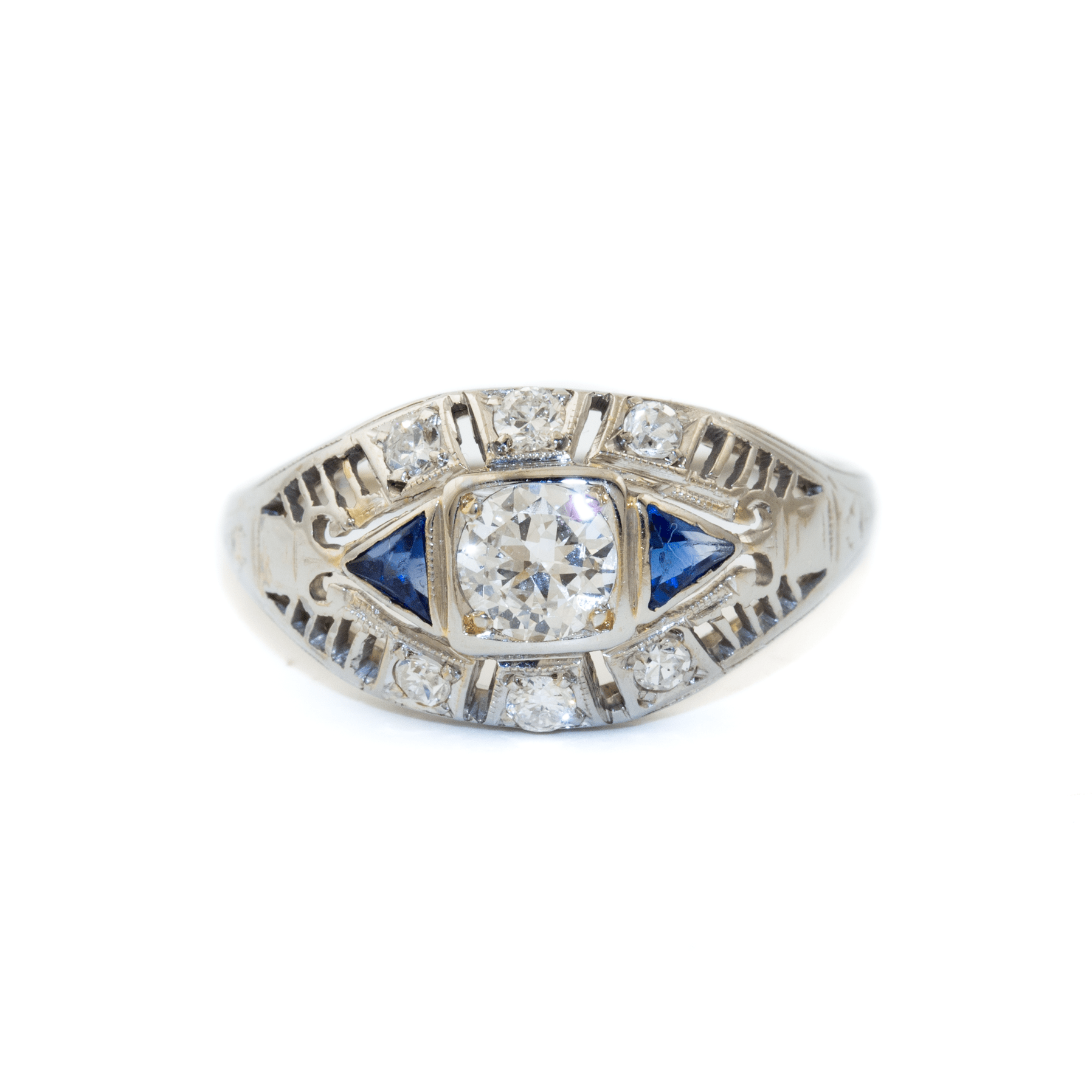 18k White Gold x Antique Natural Diamond & Sapphire "Evil Eye" Ring