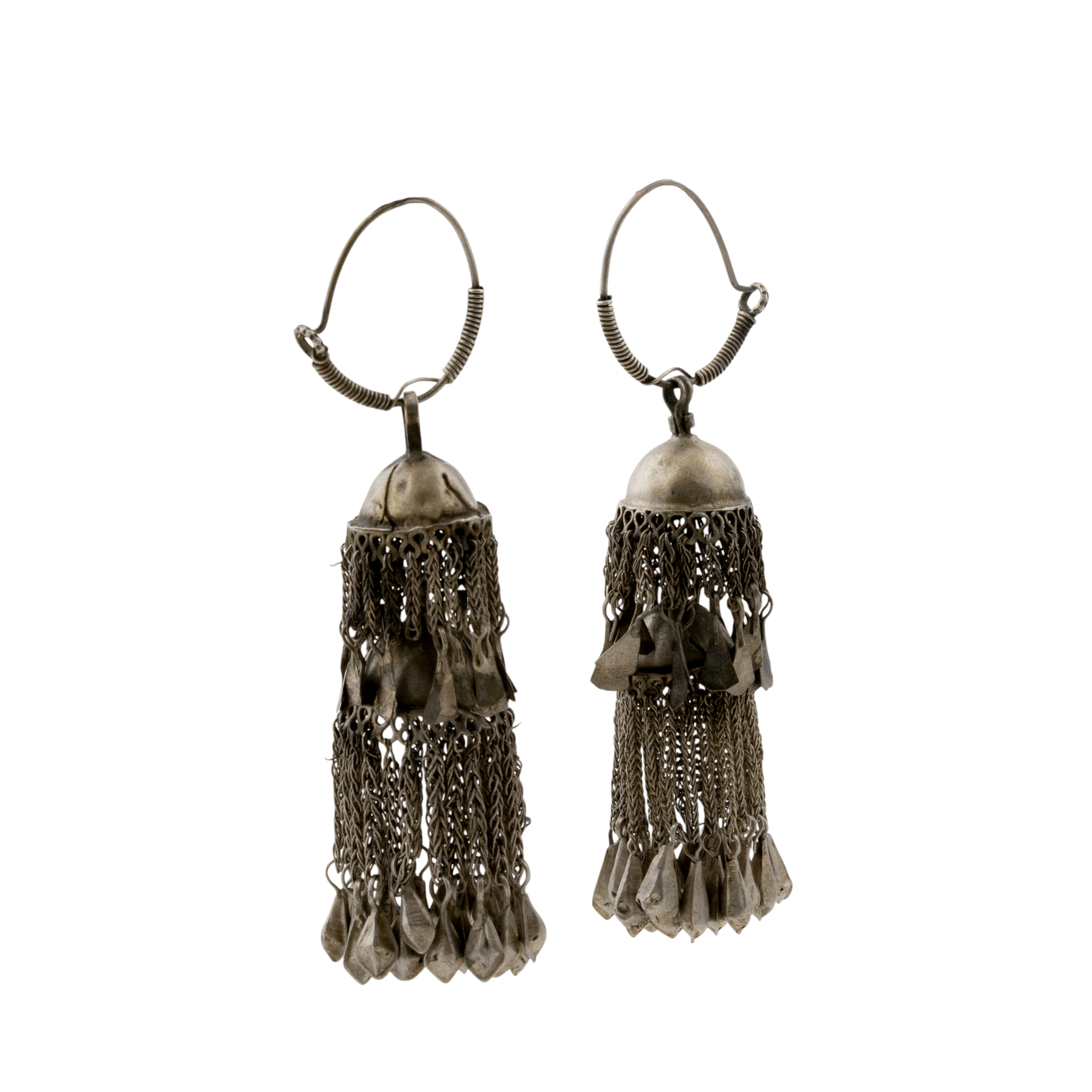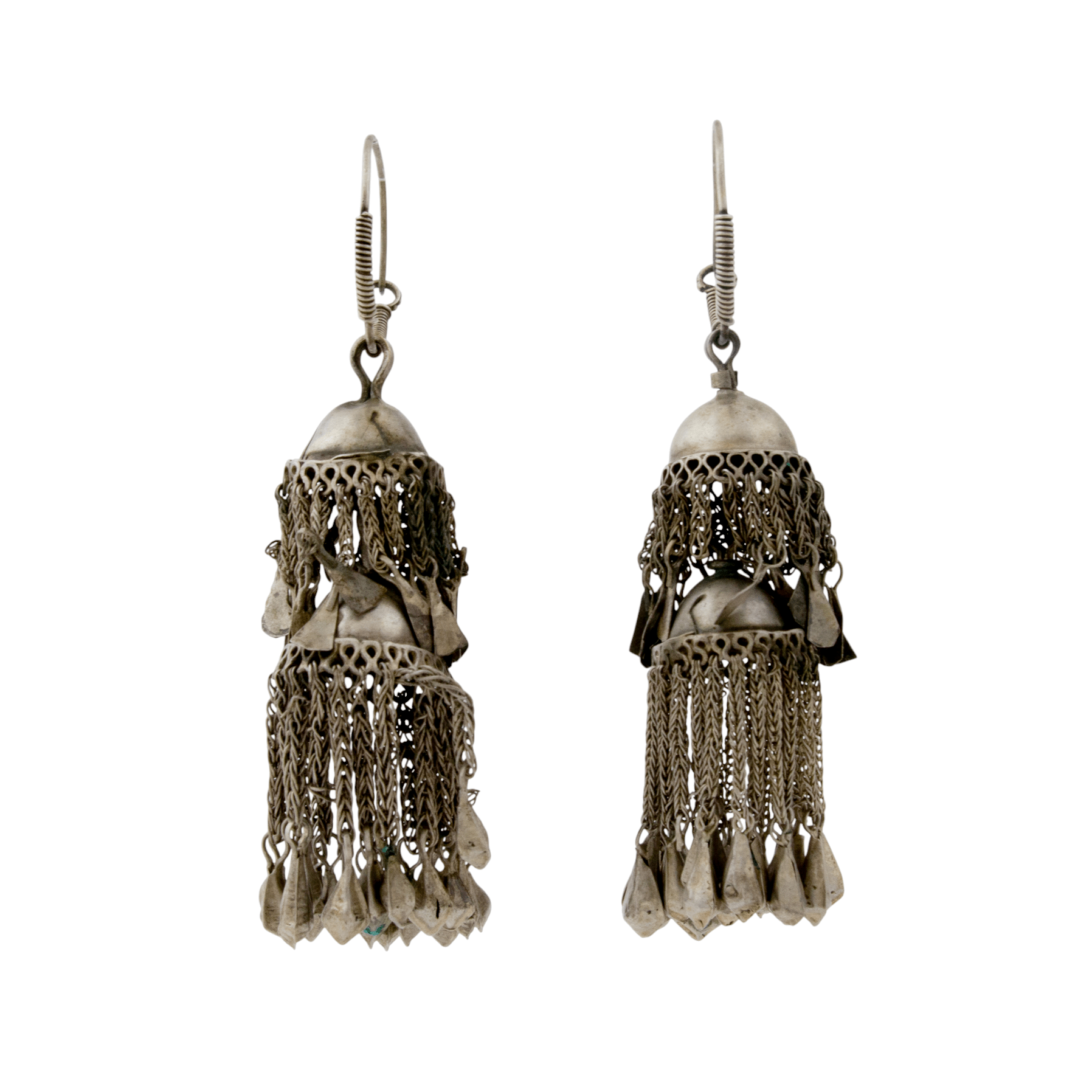 Silver x Vintage Afghan Hazaragi Tiered Chandelier Tassel Earrings