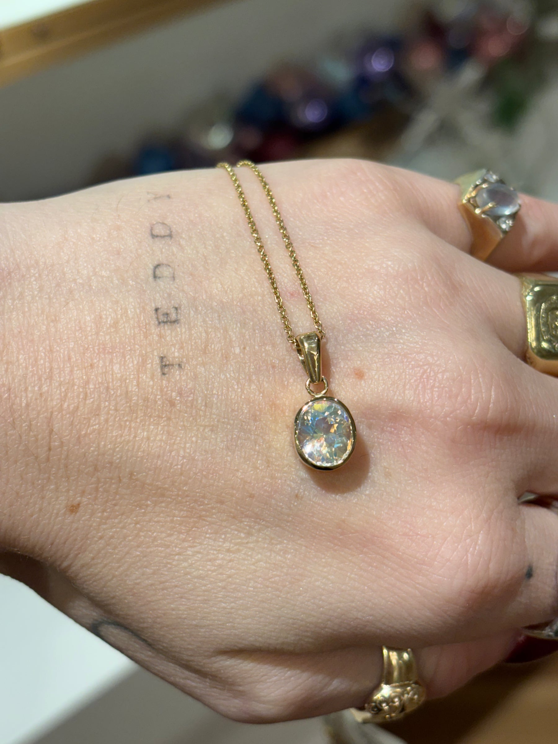 14kt Yellow Gold bezel set Oval Moonstone Pendant