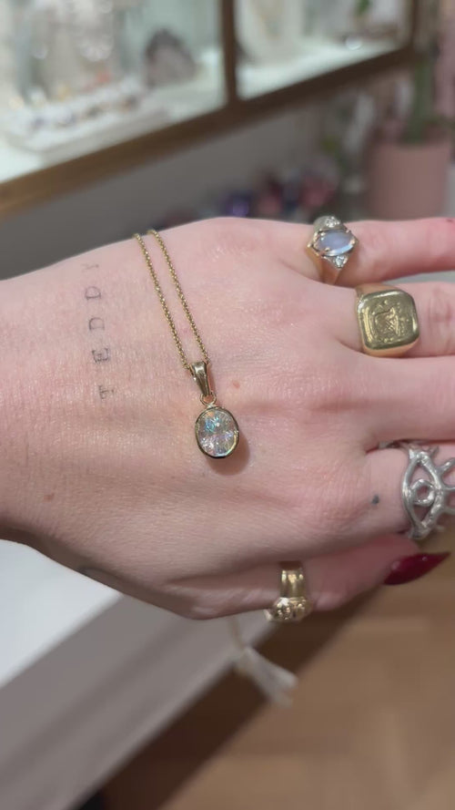14K Yellow Gold Oval Rainbow Moonstone Pendant