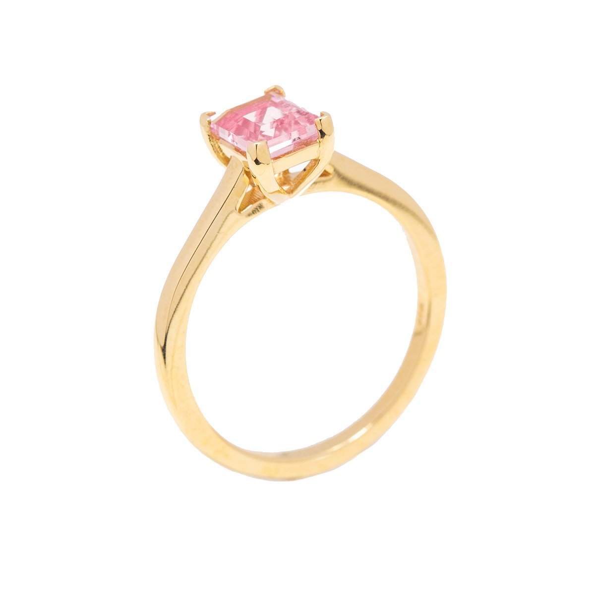 Made in Vancouver, Canada by Kingdom Jewelry using 14 Karat Yellow Gold, Morganite. Includes sizing and wood ring box