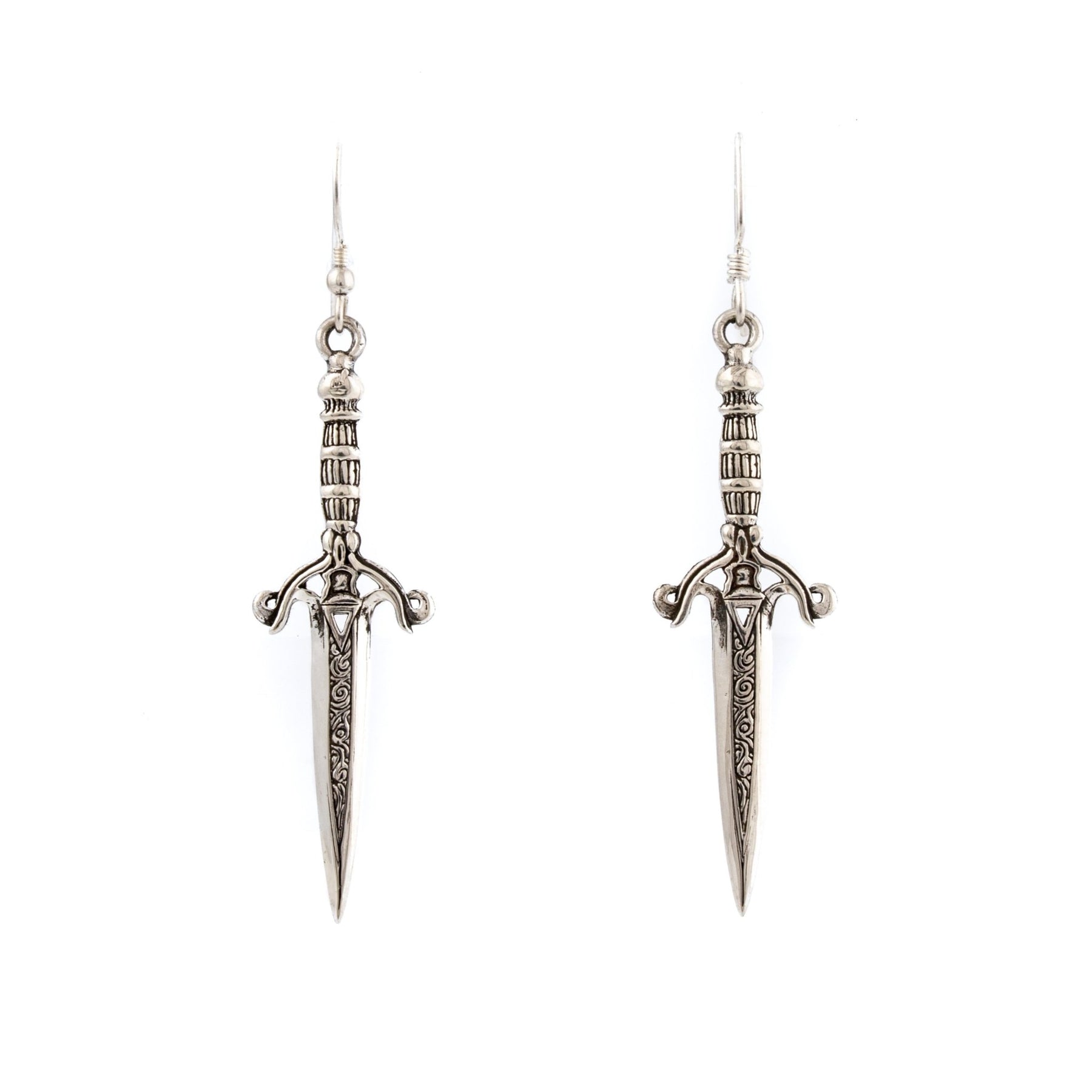 Killer detailed dagger earrings. These badass beauties are made using solid silver, are hand-carved and made locally. Great earrings that give your outfit a little edge!
