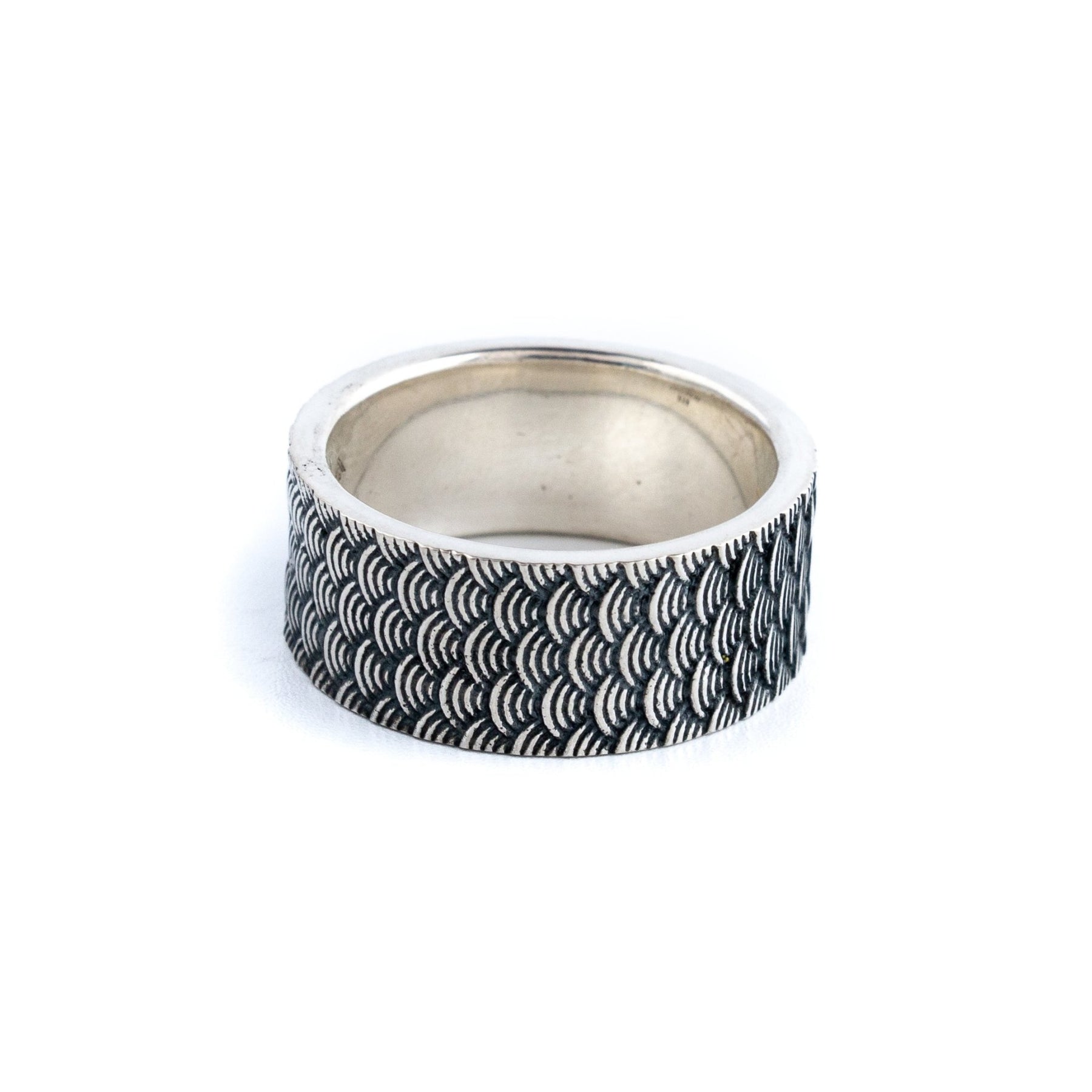 Killer sterling silver band. Hand carved scale design that creates a seamless, textured pattern making this a stand out piece you won't want to pass up!
