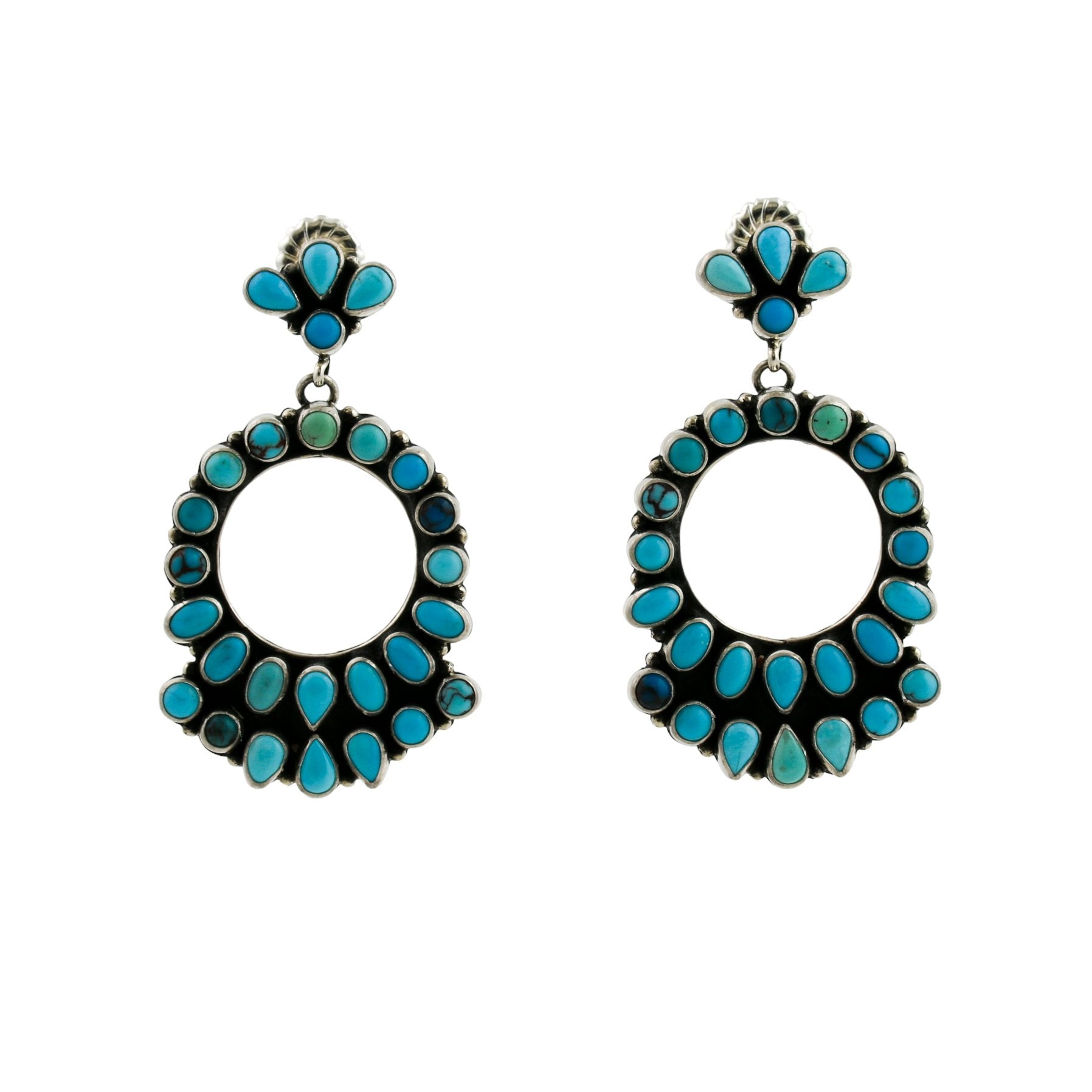Introducing our stunning pair of vintage Navajo earrings, crafted with the finest turquoise stones and featuring a unique circle shape that will catch everyone's attention. These earrings are the perfect accessory to add a touch of vintage flair to your outfit.