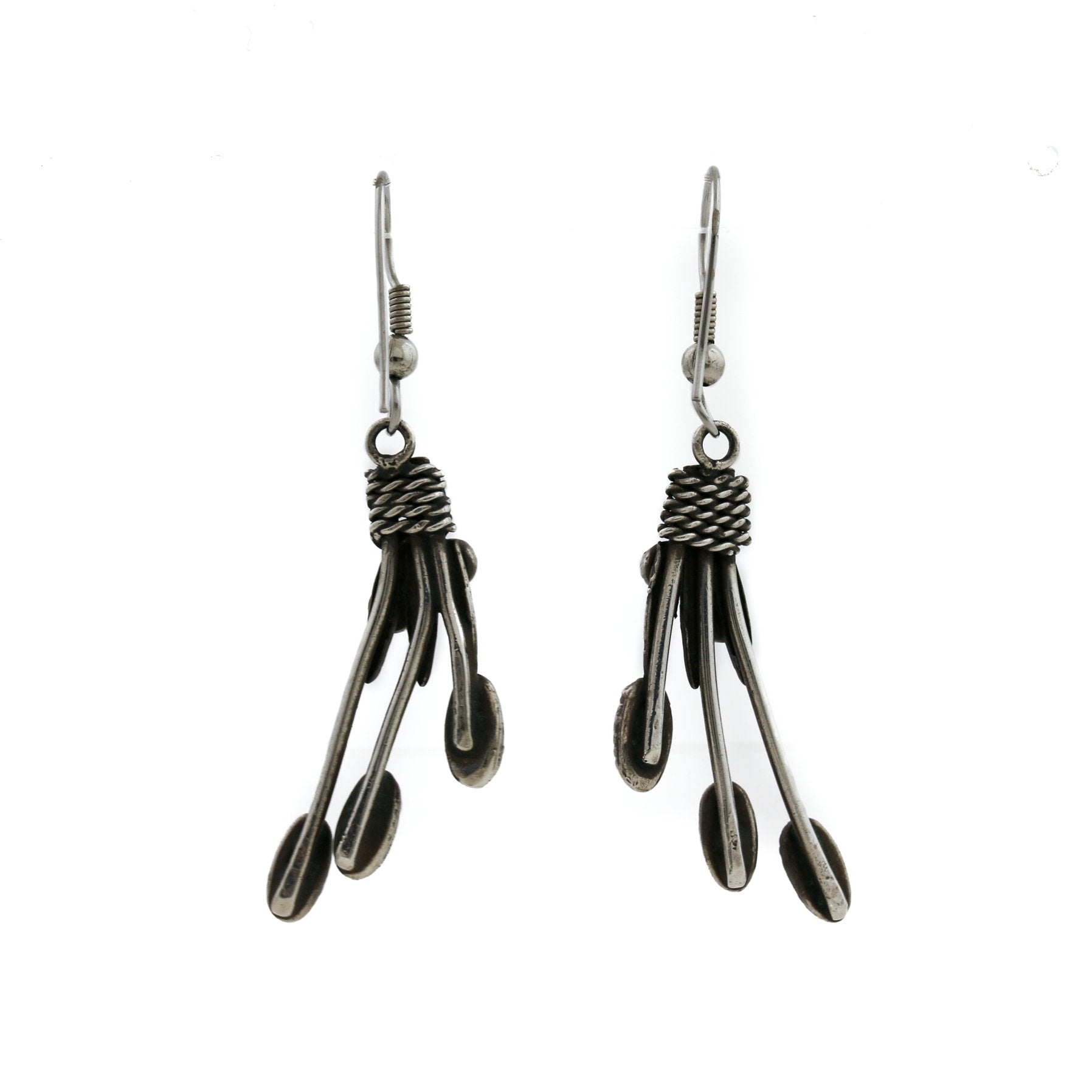 A fabulous set of vintage Navajo earrings (circa 1970's), features a mixture of blue and green turquoise set with in the abstract chandelier design. These beauties are perfect to dress up an already stylish fit.