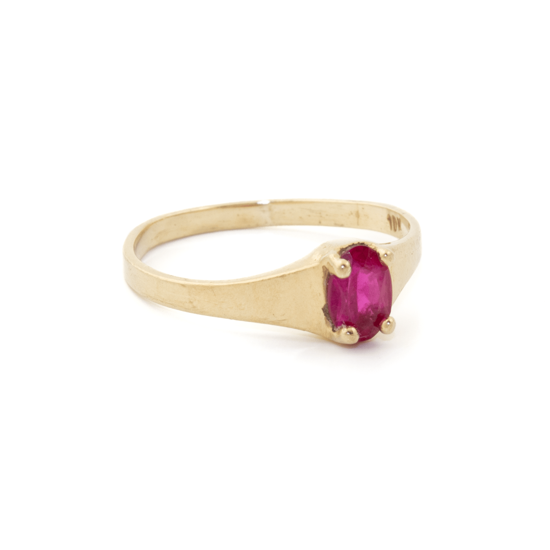 10k Gold x Classic Tapered Synthetic Ruby Solitaire