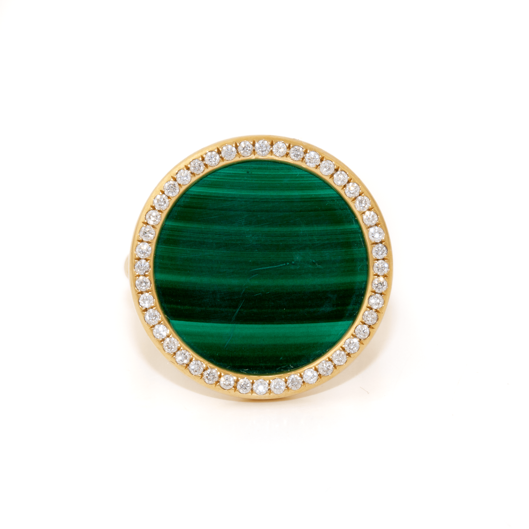 Bezel Set Flat Round Malachite + Pavé Diamonds