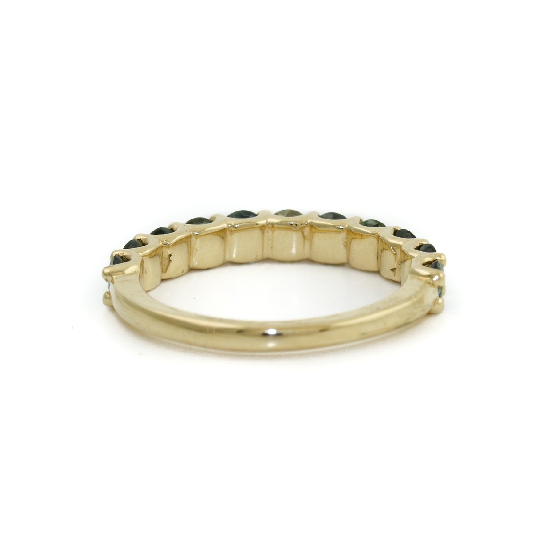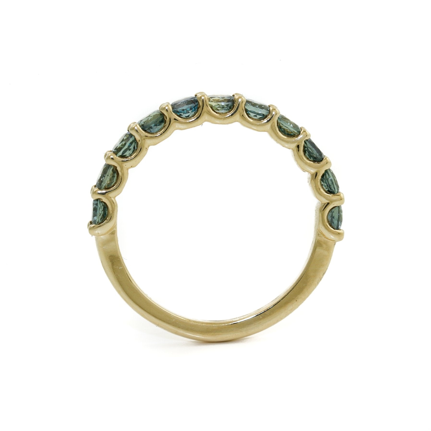 Indulge in the beauty of this Teal Sapphire band, skillfully crafted in 14K Yellow Gold.