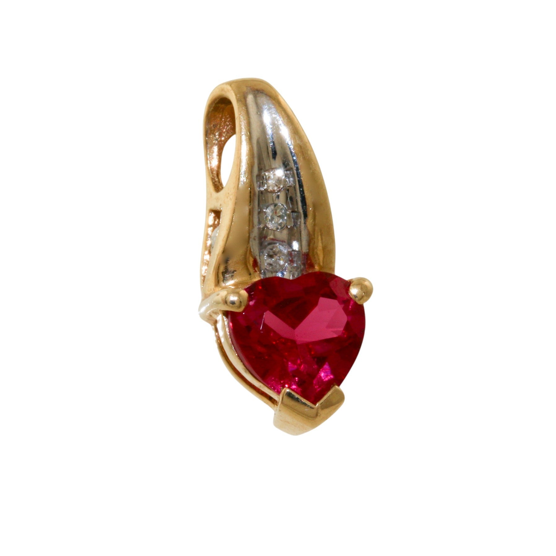 10k Two-Tone x Vintage Synthetic Heart-Shaped Ruby & Melee Diamond Pendant