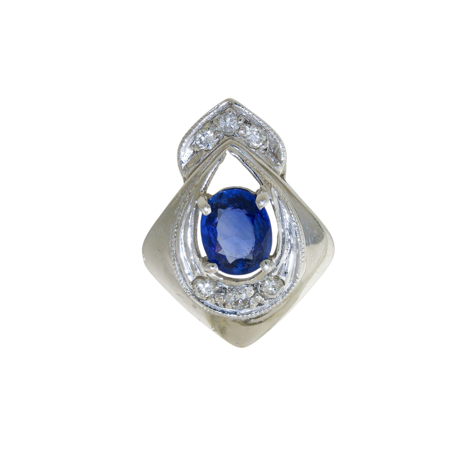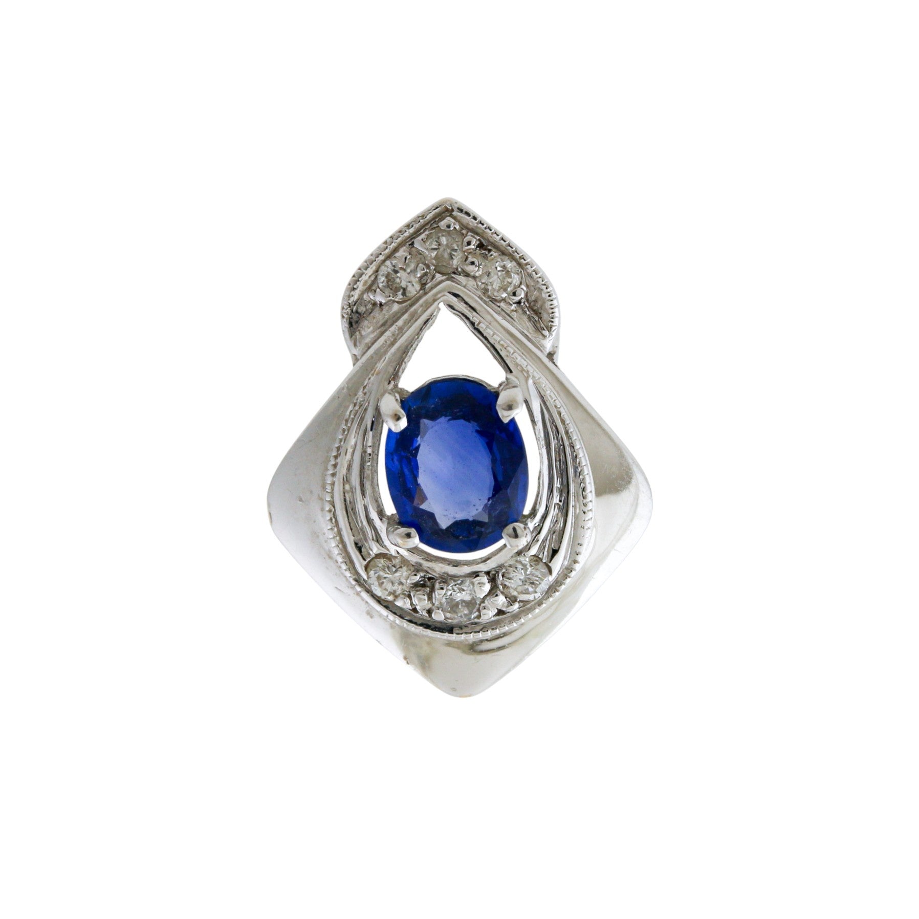 14k White Gold x Modern Halo-Accented Sapphire Pendant