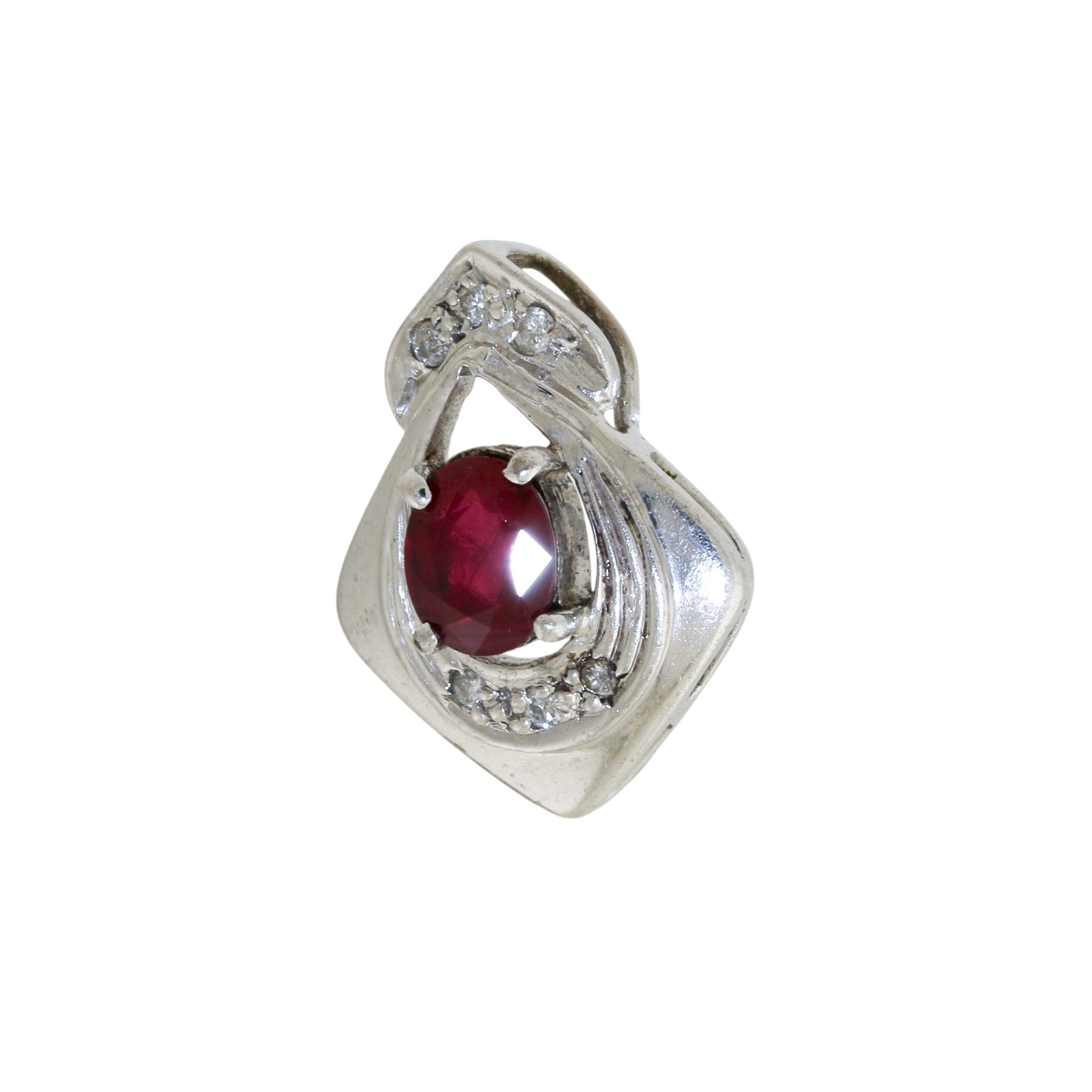 14k White Gold x Modern Halo-Accented Synthetic Ruby Pendant