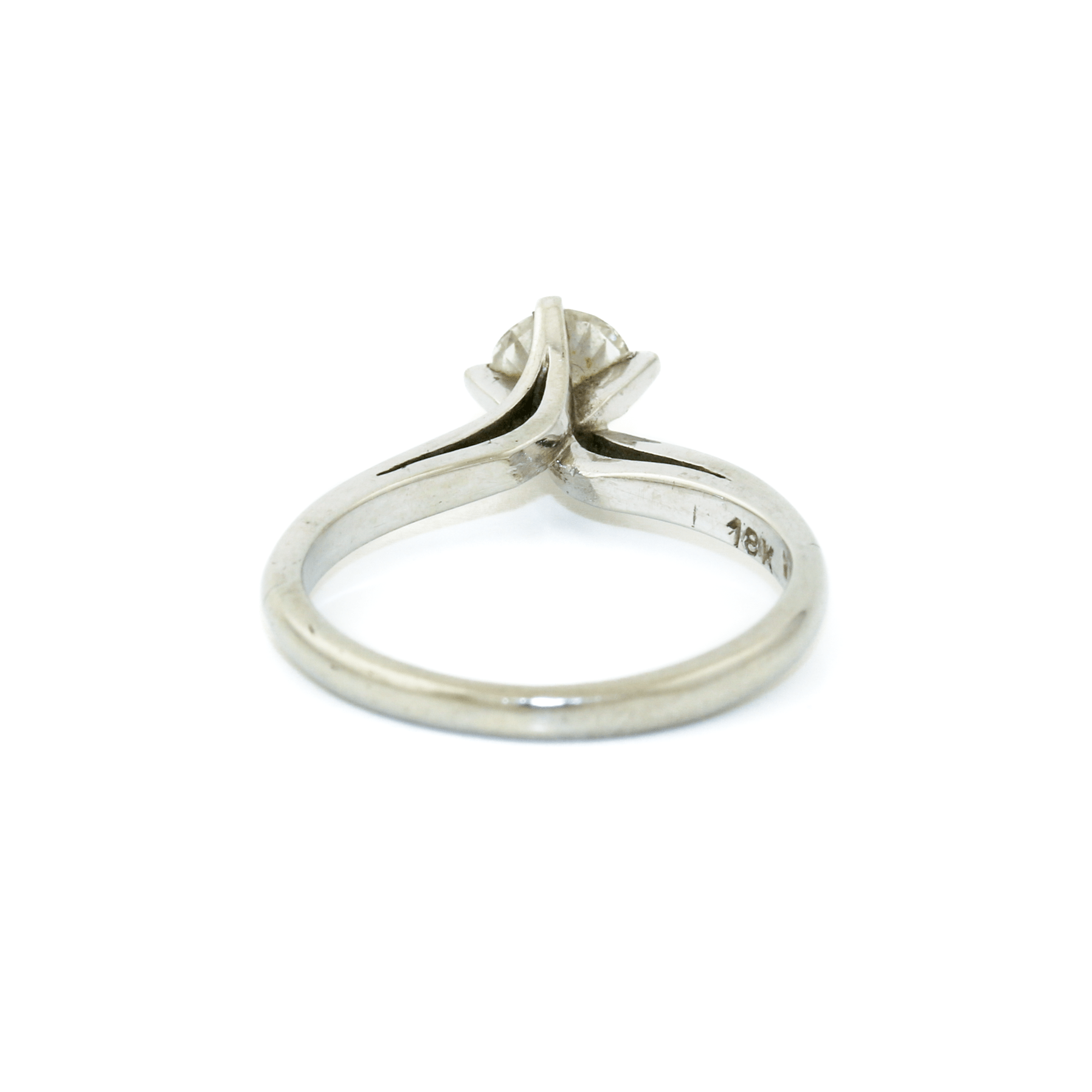 18k White x Vintage 5mm Round-Cut Diamond Bypass Solitaire Engagement