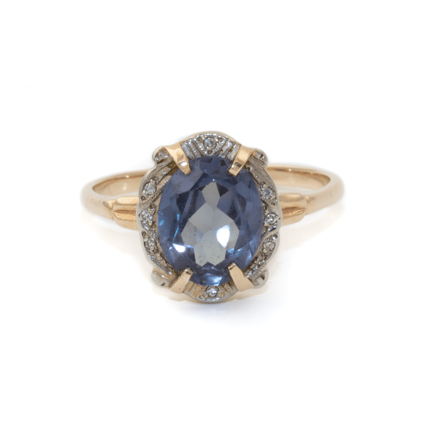 Two-Tone 10k Gold x Amethyst & Pavé Diamond Art-Deco Cocktail Ring