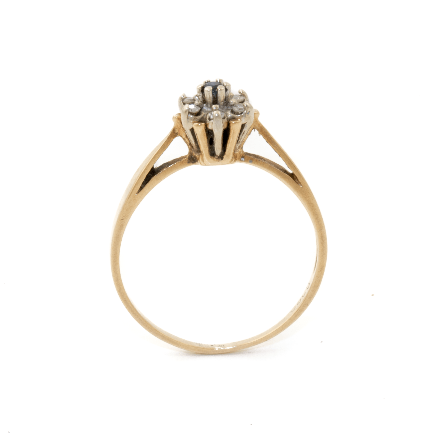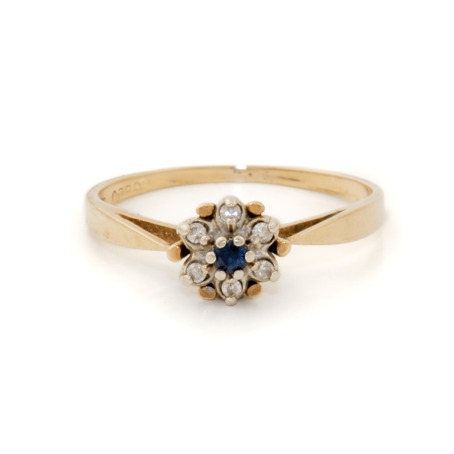 Two-Tone 10k Gold x Victorian-Style Sapphire & Diamond Flower Ring