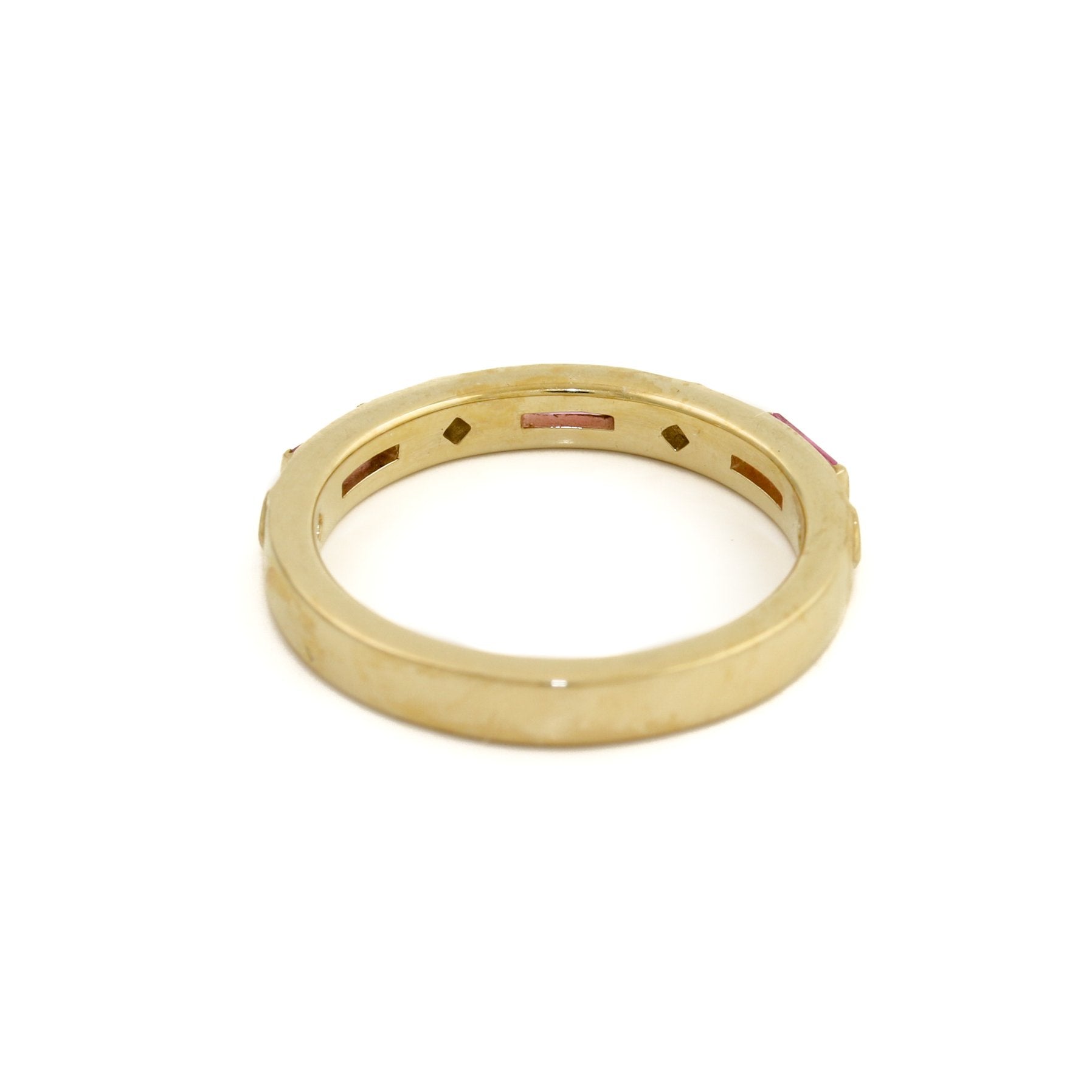 Indulge in the beauty of this Pink Sapphire band, made in 14K Yellow Gold.